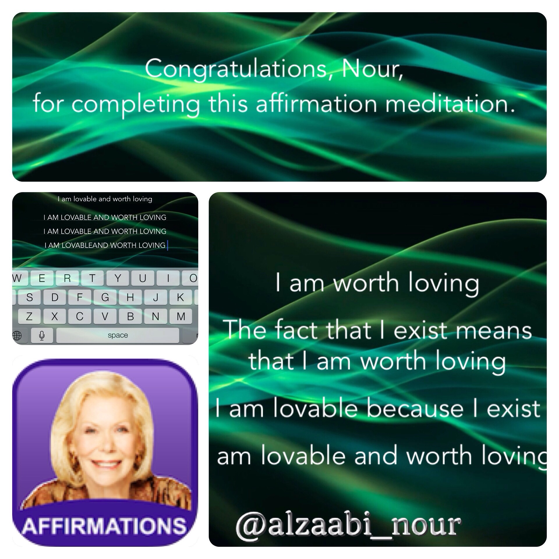 التأمل شيء جميل إذا مارسته يوميا ، كذلك وجود توكيدات إيجابية تكررها يوميا لنفسك تحدث تغيير كبير في حياتك. ولويز هاي انسانة غنية عن التعريف لها هذا الأبلكيشن اللي يتخصص بالتأمل، الجميل فيه انك تكتب اسمك وكأن الكلام موجه لك فقط، تكرر التوكيدات معاها لمن تطلب منك ، ثم تكتبها ٣ مرات، ثم تفتح الكاميرا وتطلب منك تكرر التوكيد وانت مبتسم.